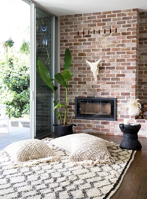 Không gian này sử dụng sàn ốp gỗ với những đường vân tự nhiên, mềm mại mang đến sự sang trọng cho căn hộ. Thiết kế chung cư này sử dụng kính cường lực để đón ánh sáng tự nhiên giúp cho căn phòng luôn tươi sáng và rộng rãi. Hơn nữa bạn có thể ngắm nhìn quang cảnh thiên nhiên qua khung cửa kính này. Cách bố trí các vật dụng như thảm trải nền, cây xanh và sử dụng gạch ốp tường tạo điểm nhấn cũng giúp căn phòng trở nên mới mẻ và trẻ trung.